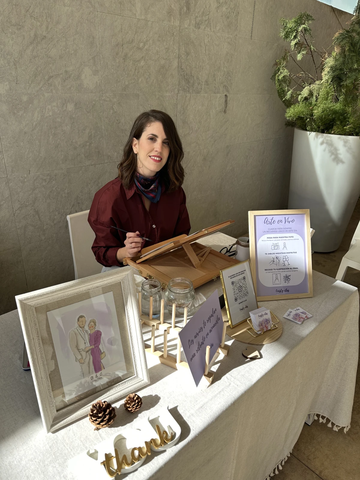 Soy Cristy Ilus, ilustradora en lápiz y acuarela. Creo arte en vivo para bodas, mini retratos como regalos para invitados en forma de marcasitios, invitaciones ilustradas y toda la papelería de la boda, transformando momentos e ideas en recuerdos delicados y llenos de alma.