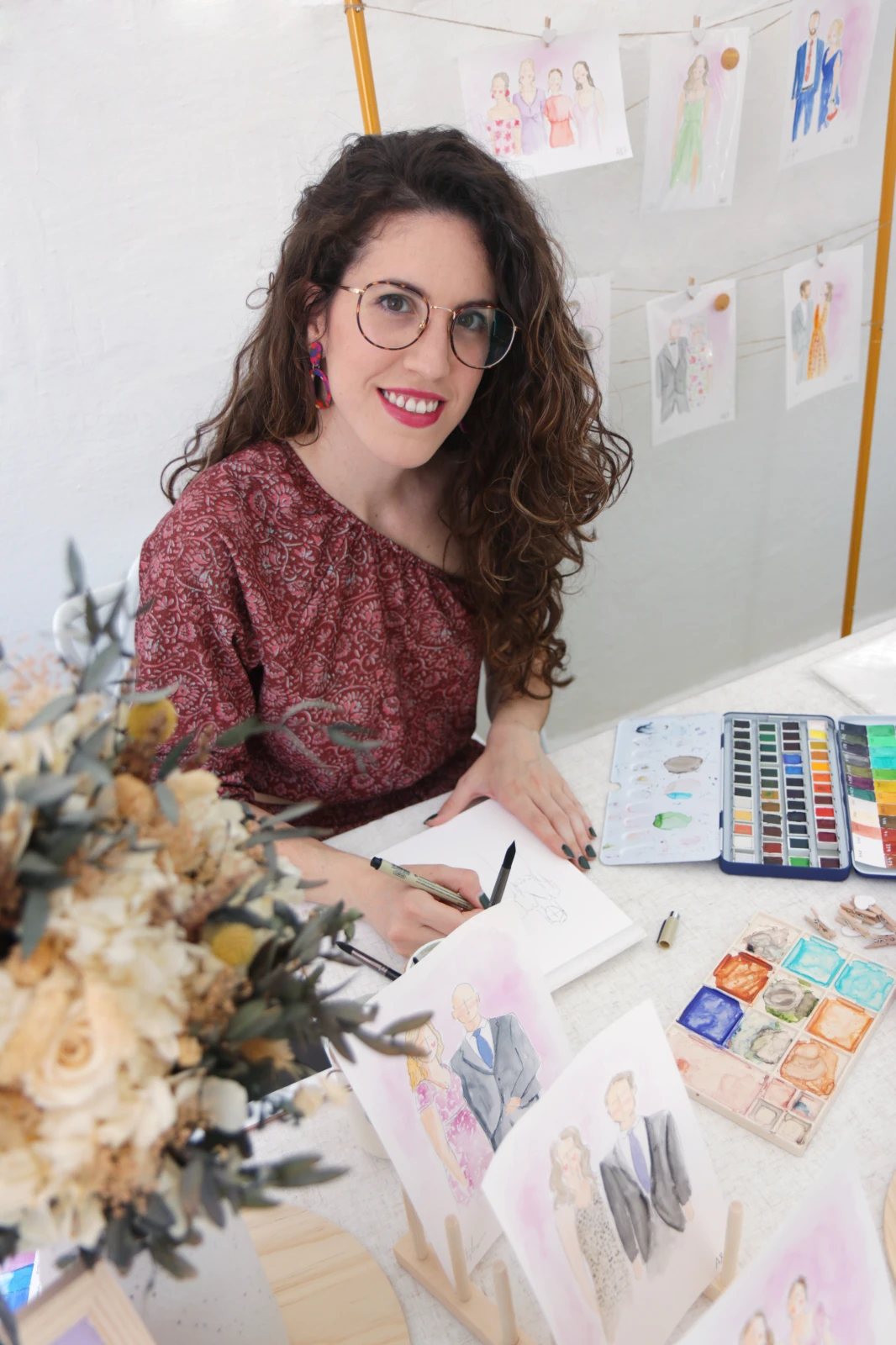 ¿Te imaginas regalar a tus invitados un recuerdo mágico, hecho a mano y en el momento? Durante vuestra celebración, capturo la esencia del día pintando a vuestros invitados en acuarela, creando un pequeño estudio artístico dentro del evento. Retratos individuales, en pareja o en familia que se convierten en un recuerdo elegante, original y emocional.