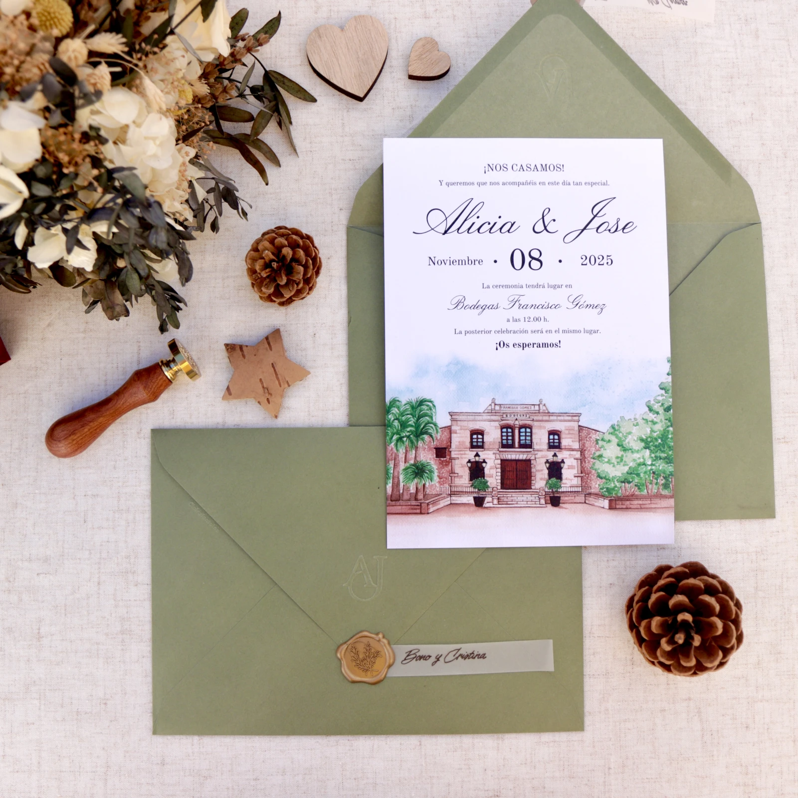 La boda empieza mucho antes del gran día, con una emoción, una idea… y esa primera invitación que llega a manos de vuestros invitados. Diseño invitaciones ilustradas a mano, totalmente personalizadas: retratos, flores, lugares especiales, vuestra mascota… Todo pensado para contar vuestra historia con estilo, cariño y alma. Sin plantillas ni diseños en serie, cada invitación es única, como vosotros.