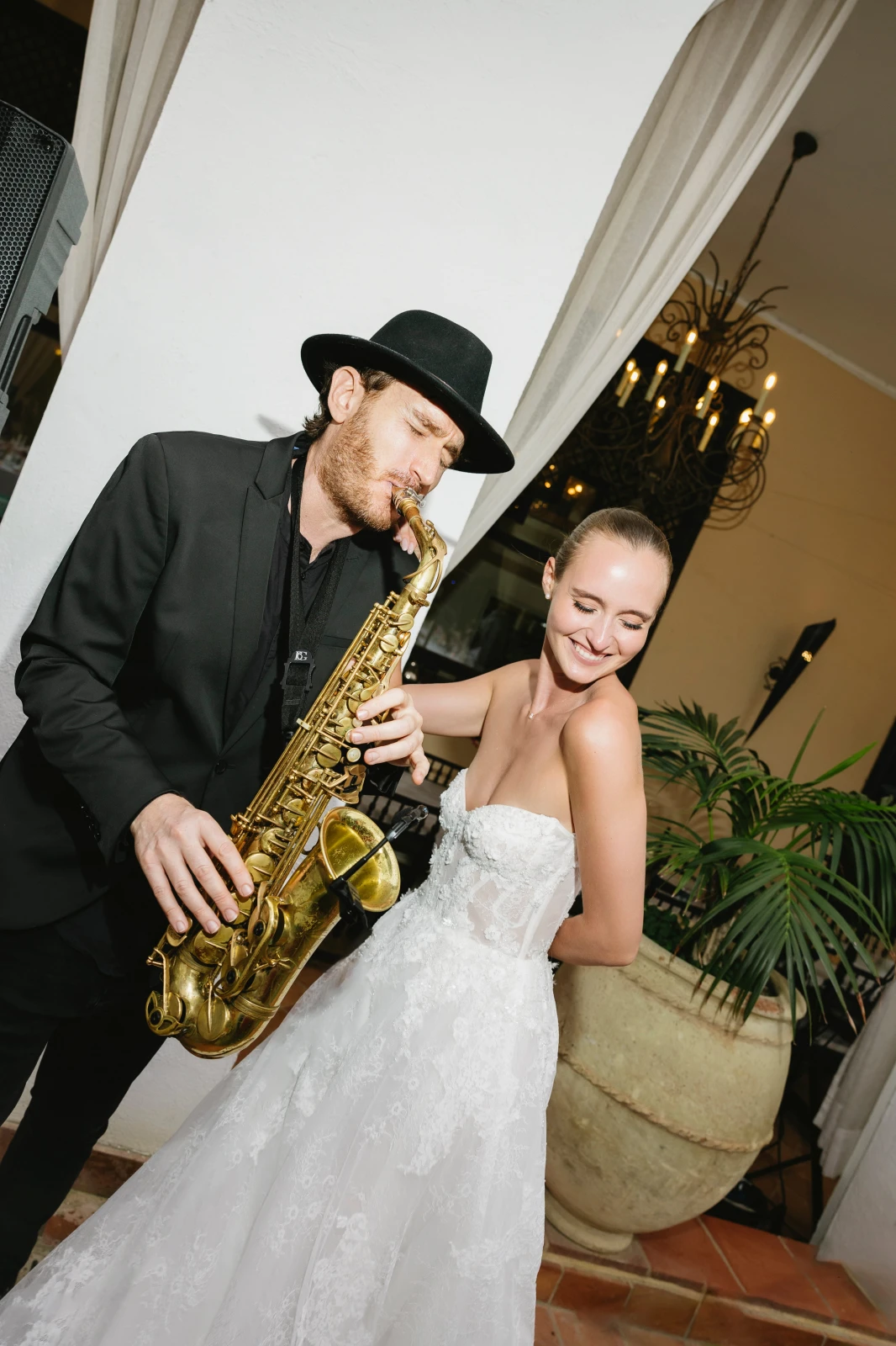 Actuación de 1,5h de saxo en directo acompañado de pistas instrumentales de alta calidad. Esto puede ser para el cóctel o bien para el baile, donde hago diferentes pases y pongo luces led al saxo. También ofrezco la posibilidad de tocar en la ceremonia, así como diferentes packs de boda: soy muy flexible y estoy abierto a diferentes formatos, consultadme para más información.