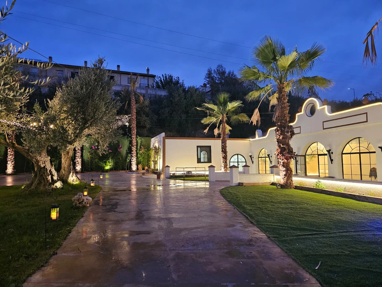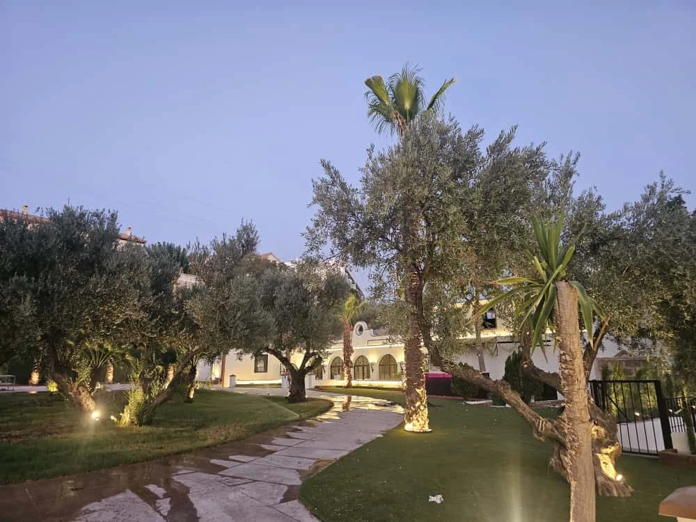 Con un amplio de aparcamiento privado, este espacio destaca por su versatilidad y encanto andaluz. Su gran salón interior, bañado por la luz natural que entra a través de sus ventanales, se abre a grandioso un jardín donde se integran armoniosamente zonas de césped, olivos centenarios, palmeras y fuentes decorativas.